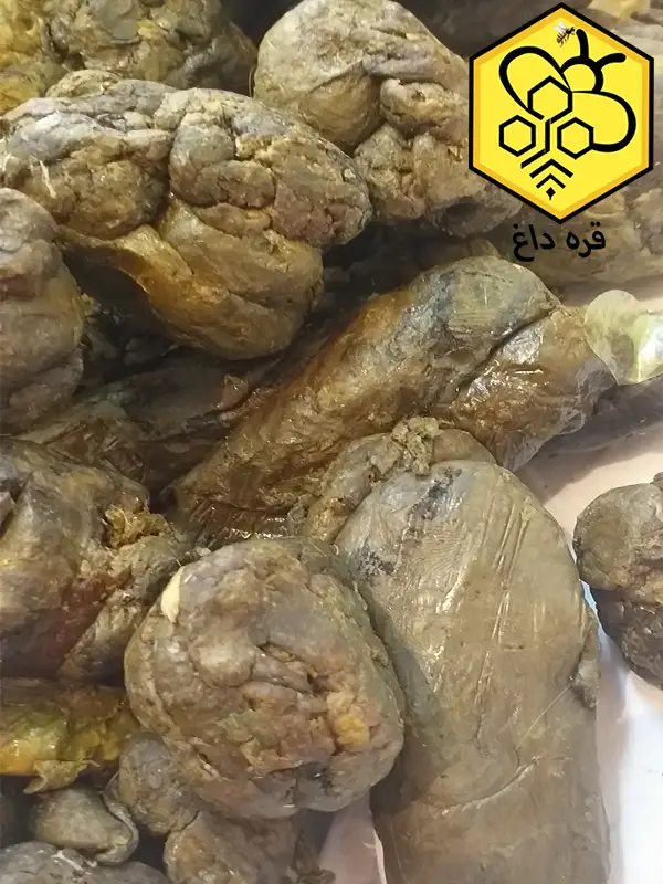 - شکل: به صورت تودههای سفت و چسبناک با رنگهای متفاوت (قهوهای تیره، سبز، سیاه) که مستقیماً از کندو برداشت شده و ممکن است حاوی ناخالصیهایی مانند تکههای چوب، زنبور مرده یا موم باشد.