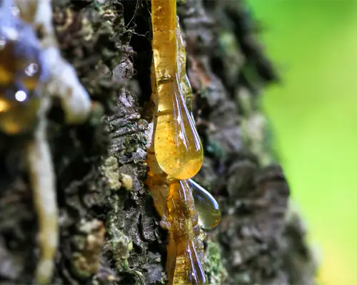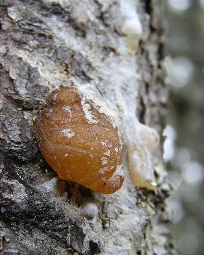 - شیره و صمغ تراوش شده از تنه درختان: در محل آسیبدیدگی یا شکستگی ساقه.