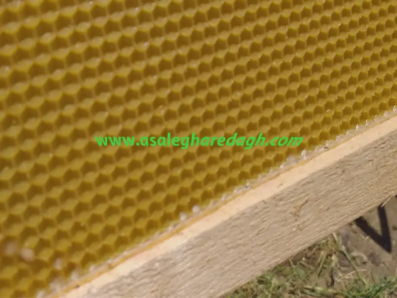 - قاب و موم آجدار (Frame & Foundation): قابهای چوبی یا پلاستیکی، چهارچوبی هستند که زنبورها حجرههای مومی خود را روی آن میسازند. برای سرعت بخشیدن به کار زنبورها و ایجاد ساختاری منظم، یک ورقه نازک از موم یا پلاستیک با الگوی ششضلعی به نام “موم آجدار” در وسط قاب قرار داده میشود.